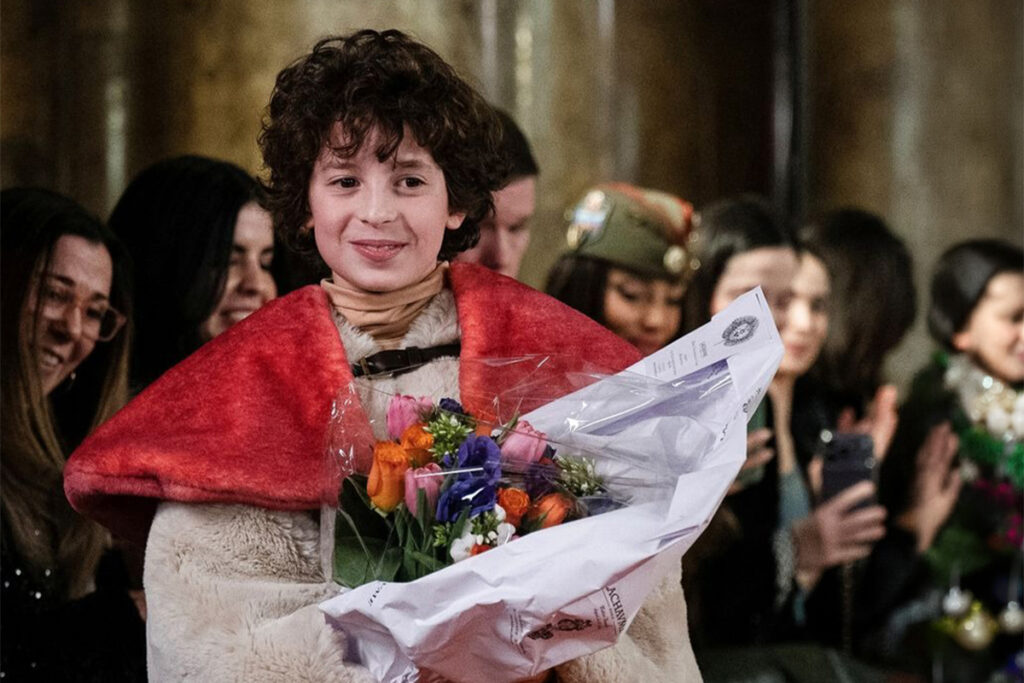 La collection Automne/Hiver 2026-2027 présentée ce soir-là ne se distingue pas uniquement par l’âge de son auteur. Sur les 15 pièces défilées, 90 % sont biodégradables, recyclables ou issues de l’upcycling.